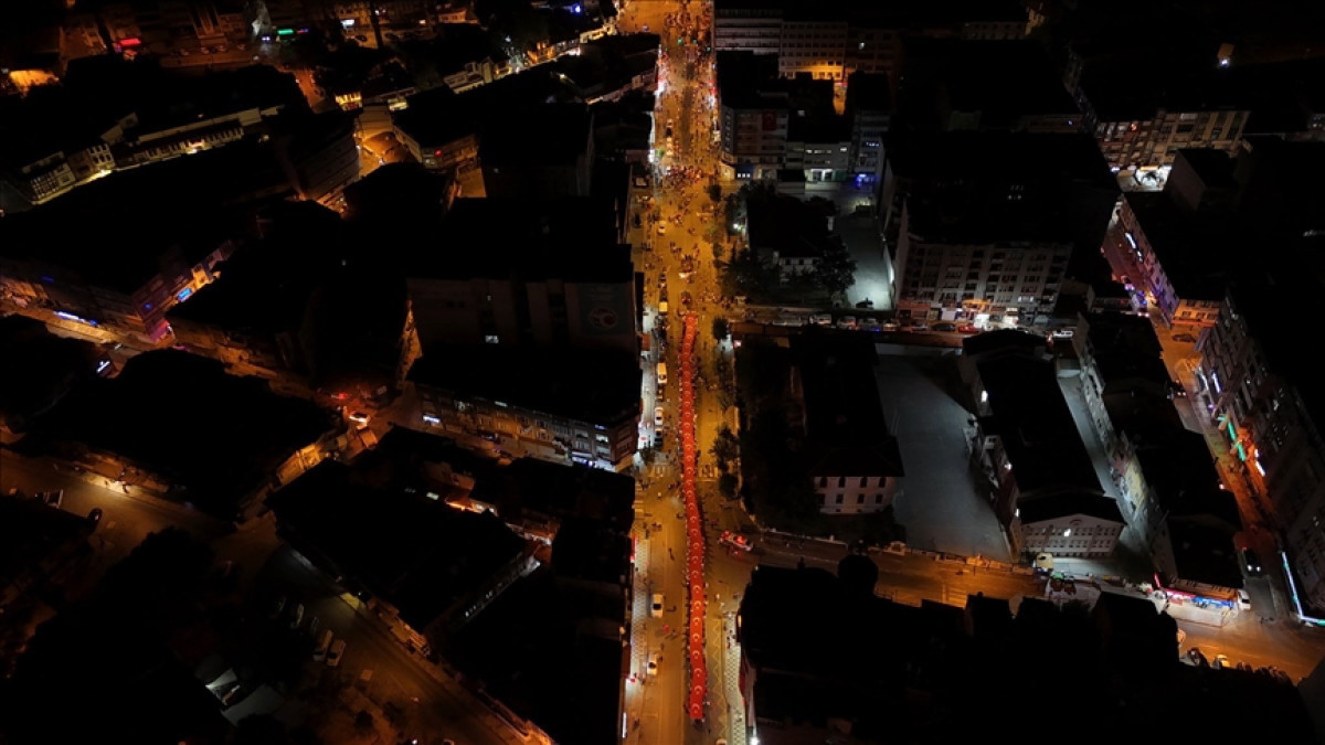 Kurtuluş Caddesi’nden 41’inci Komando Tugay Komutanlığı Birlikleri ve Deniz Kuvvetleri Komutanlığı Bandosu eşliğinde başlayan fener alayında vatandaşlar, ellerinde Türk bayrakları ve meşalelerle, Anıtpark’a kadar yürüdü.