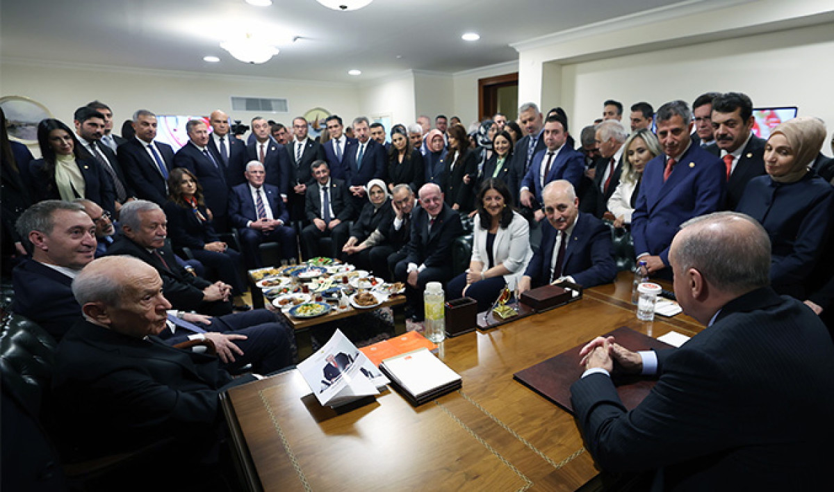 TBMM’nin 28. Dönem 4. Yasama Yılı açılışı sonrası sürpriz buluşma. Cumhurbaşkanı Recep Tayyip Erdoğan, Meclis’teki konuşmasının ardından Genel Kurul kürsüsünün arkasındaki Başkanlık odasında TBMM Başkanı Numan Kurtulmuş, MHP Genel Başkanı Devlet Bahçeli, DEM Parti Eş Genel Başkanı Tuncer Bakırhan ve İYİ Parti Genel Başkanı Müsavat Dervişoğlu ile görüştü. Görüşmede, Cumhurbaşkanı Yardımcısı Cevdet Yılmaz, eski TBMM Başkanı İsmail Kahraman ile bazı milletvekilleri de yer aldı.