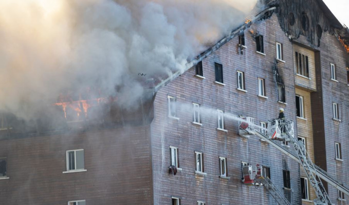 Bolu Kartalkaya’da bir otelde gece saat 03.30 sıralarında yangın çıktı. Kartalkaya’da doluluk oranı yüzde 90 olan otelin dördüncü katında bulunan restoran bölümünde çıkan yangın hızla tüm katlara yayıldı ve en az 10 kişi hayatını kaybetti.